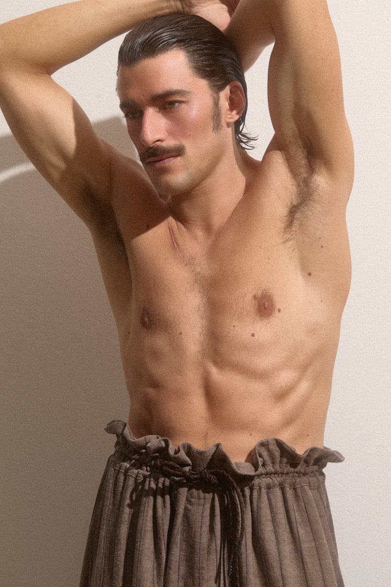 Despite a deep love for research and teaching, Giovanni ultimately realized that academic life was not where he belonged. In 2021, he left Munich for Barcelona, where revisiting old photoshoots reignited his connection to modelling. In 2023, the launch of his Instagram brought renewed visibility and opportunity. Returning to fashion after a decade away felt, to Giovanni, like a homecoming. Photographer Rebecca Dorothy captures Giovanni styled by Martina Bruna in this Fucking Young! exclusive, where she explores the idea of the man through the female gaze.