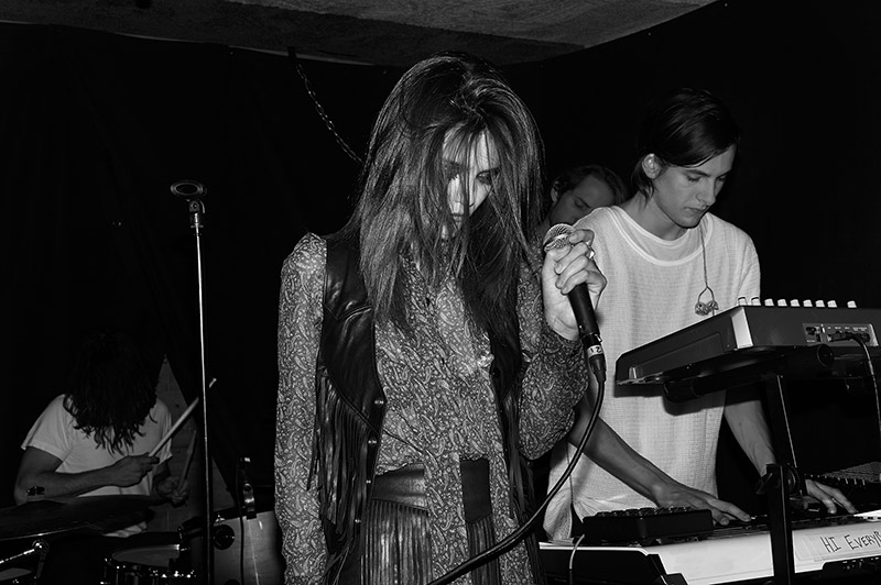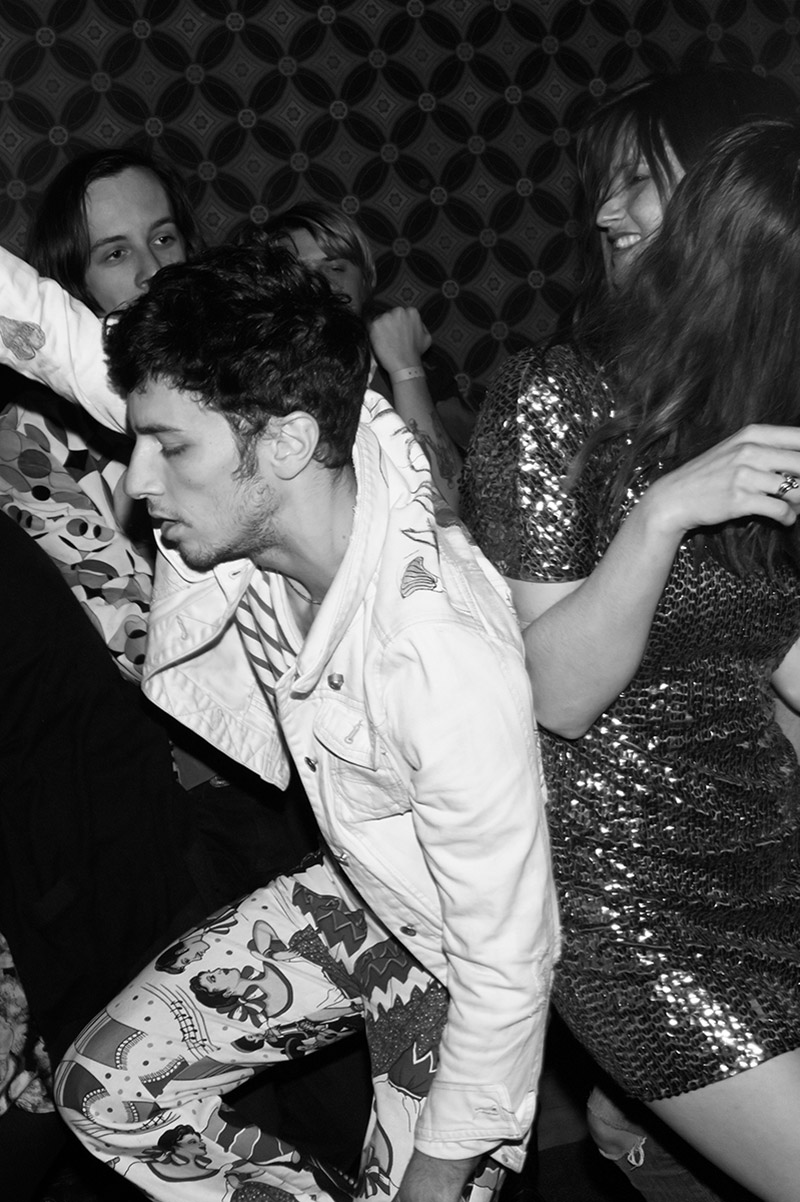 Through a hidden entrance behind a fake refrigerator, sanctioned bands like Sunflower Bean (whose lead singer, Julia Cumming, was dressed by Slimane for this performance and has been an exclusive model of his for the last two years), The Garden, Mini Mansions, Bleached and Sky Ferreira performed rollicking sets on the venue’s tiny stage before a packed crowd, which included a mix of young Hollywood (Jack Kilmer, Juno Temple, Patrick Schwarzenegger, Dylan Brosnan, Jeremy Irvine, Will & Nicola Peltz, Saoirse Ronan, Avan Jogia), alternative rock mainstays (The Animals, The Black Keys, Queens of the Stone Age, Daft Punk, Mark Ronson, the Arctic Monkeys), indie bands (DIIV, Allah Las, Warpaint, White Fang, Best Coast, Tobias Jesso Jr.), young pop artists (Charli XCX, Actually Huizenga), and even a few French new wave musicians (Moodoïd, La Femme, and Melody’s Echo Chamber).