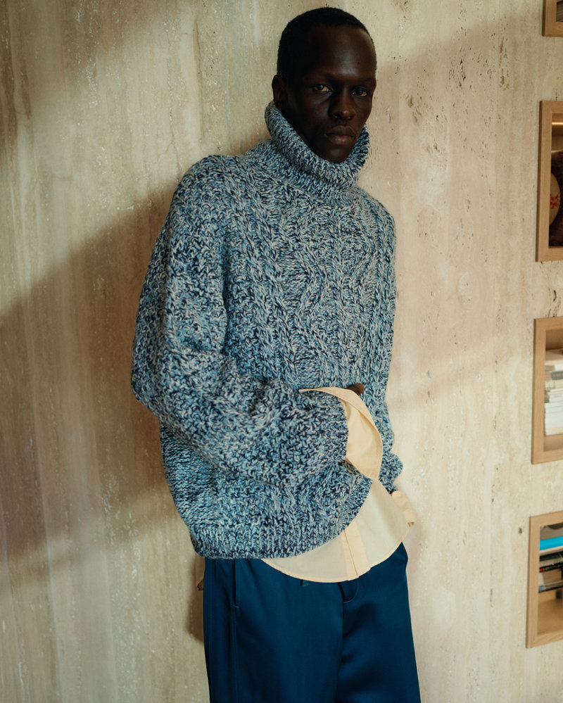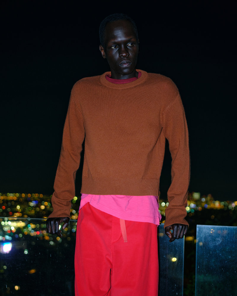 Born in Brunei and educated at ArtEZ and Central Saint Martins, Lak’s career has included roles at Phillip Lim, Balmain, and Dries Van Noten before founding Sies Marjan in 2016. A recipient of the CFDA Emerging Designer of the Year award, Lak continues to refine his poetic use of color and subversion of material with Sanderlak, a brand that, with Year 01, moves from the brightness of day into the charged ambiguity of night.
