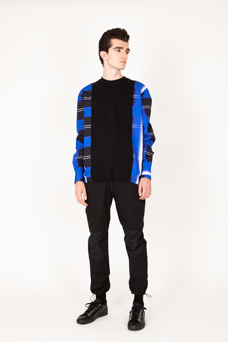 Sporty features and reversible parkas are some of the highlights of the collection. Another remarkable part is the Glitch pattern. This pattern was obtained accidentaly when the computer of the designers crashed while these were working on new designs, creating an image that became a strong element of the colection. The collection includes a t-shirt in collaboration with the Japanese label Raid System Tokyo.