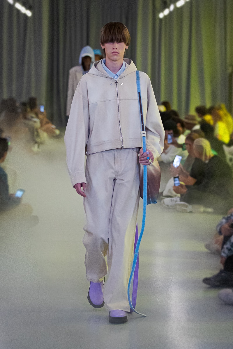 The collection draws from the iconic male figures of early 2000s magazines, connecting that era’s attitude with a pared-down, strong aesthetic.