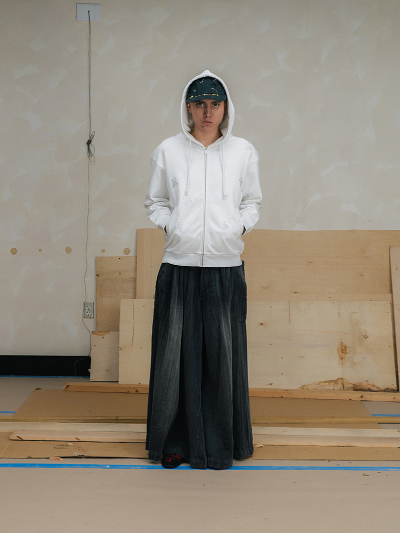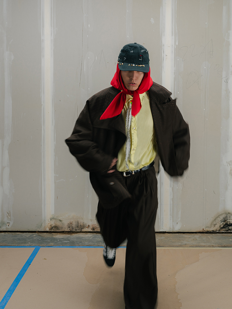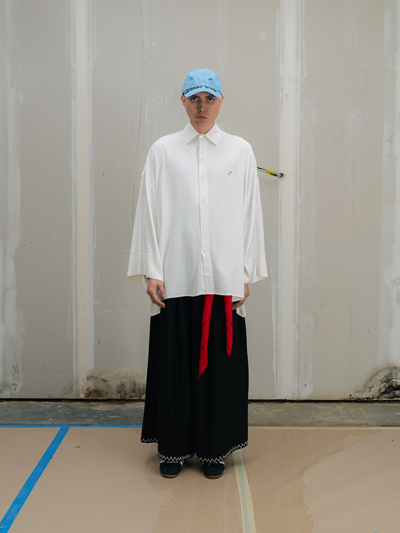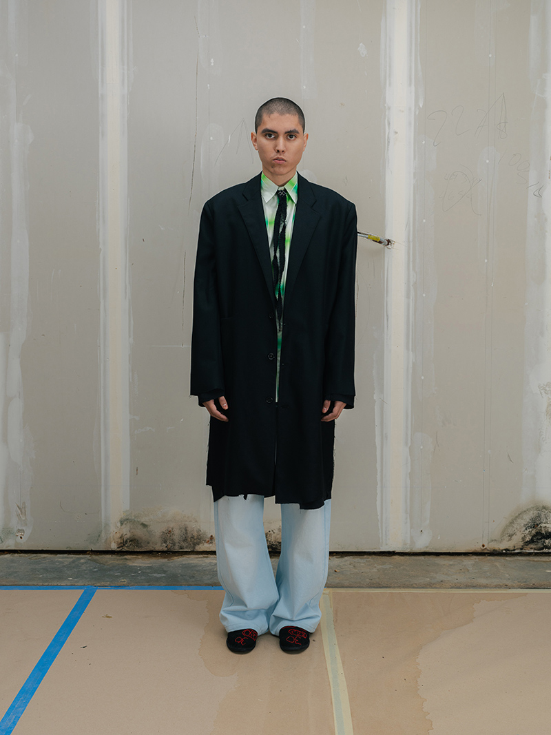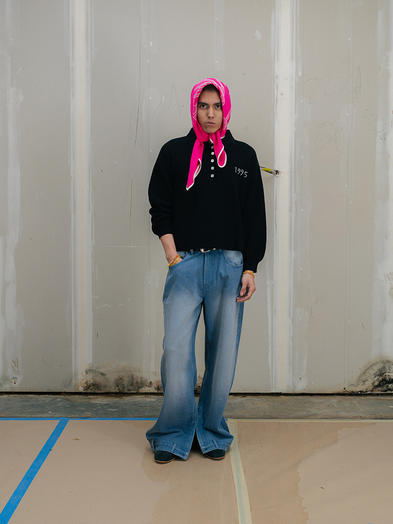 This season marks a step forward for Creative Director Saber Ahmed. The collection moves toward a more mature and architectural vision. Yet, it does not leave behind the elements that define the label: its subversive humor and its stance against perfection.