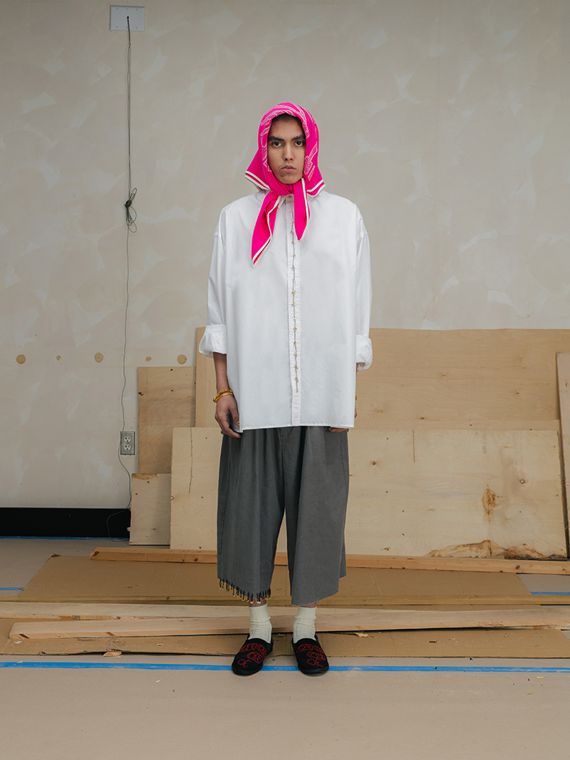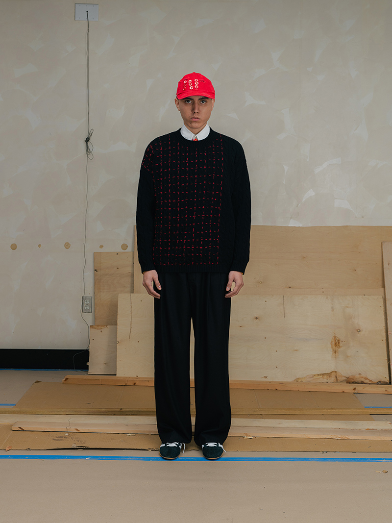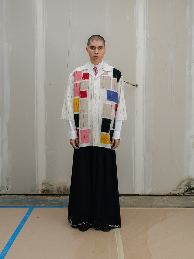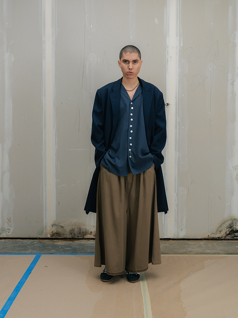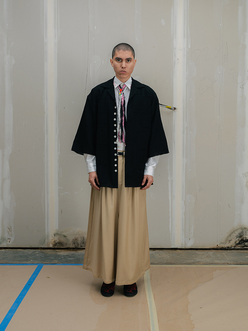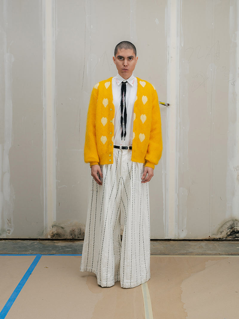 This season marks a step forward for Creative Director Saber Ahmed. The collection moves toward a more mature and architectural vision. Yet, it does not leave behind the elements that define the label: its subversive humor and its stance against perfection.