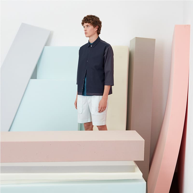 “Foamalities” takes its inspiration from the universal color range of foam. The typical dusty pastel color palette juxtaposes pop with formal wear. Fashion is often taken too seriously. With this collection, Stephan Schneider arranged garments in a playful manner not shying away from banality or cliches.