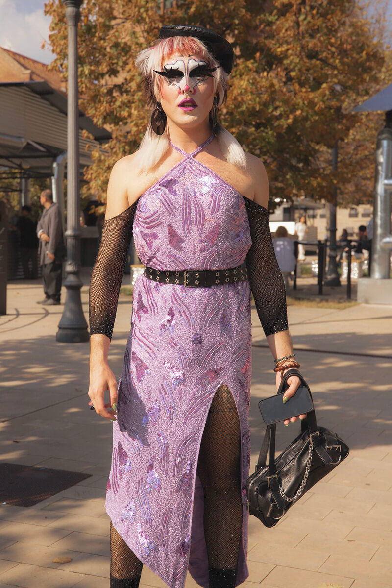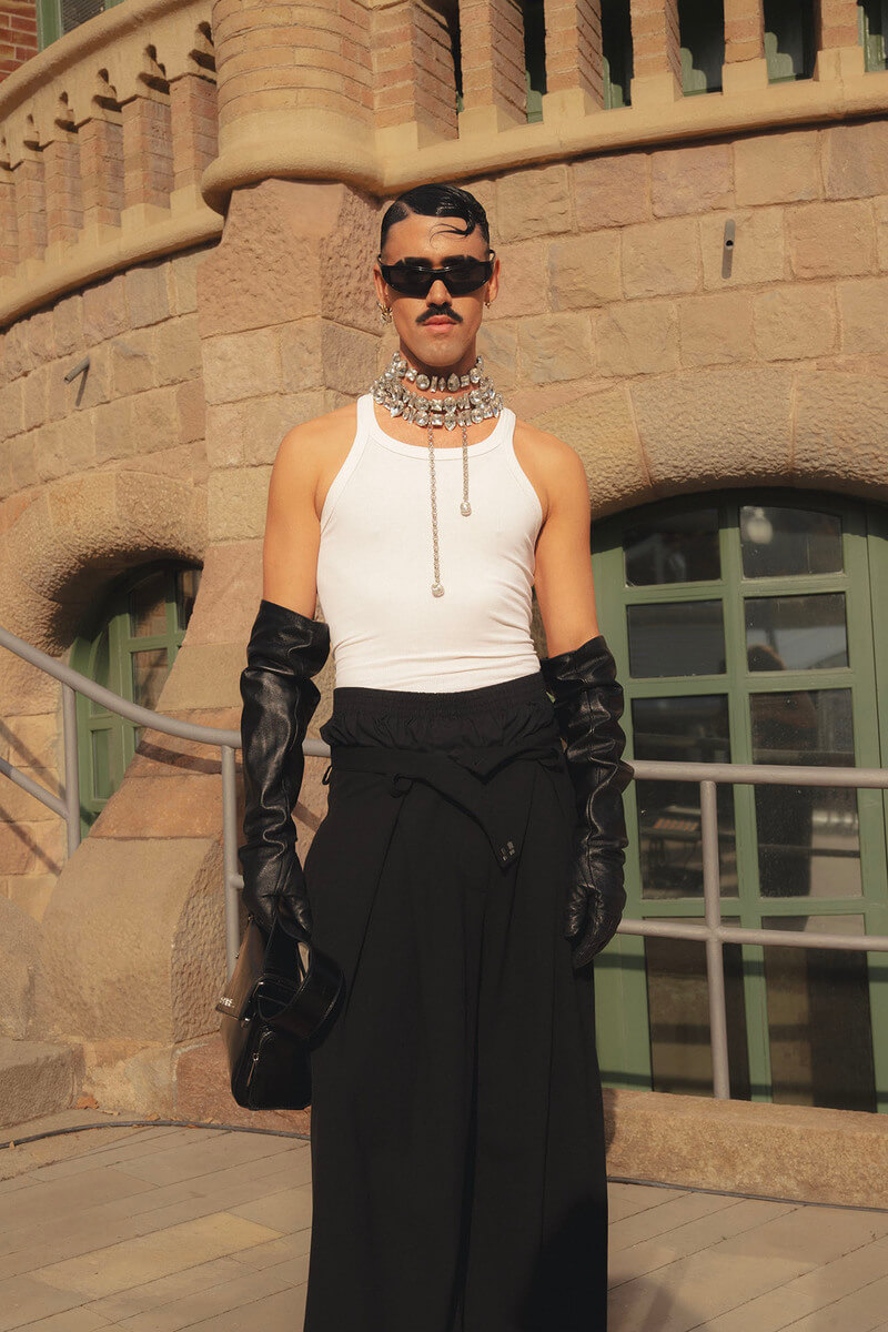 Outside the shows, the real runway unfolded on the streets. Through Ángela Ibáñez’s lens, 080 Barcelona Fashion becomes a playground of self-expression — a place where boundaries blur and queer energy takes over. Her portraits celebrate those who dress as they feel, turning the pavement into a manifesto of freedom. Each look is a story of defiance, tenderness, and pure individuality — proof that style, at its core, is about daring to be seen. Time to score your favorite looks: