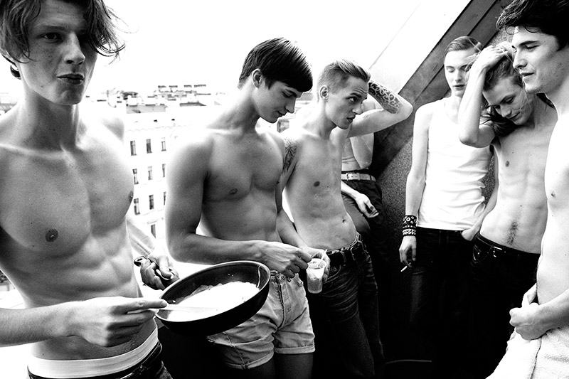 Arthur Daniyarov, Vanya Zaharov, Nik Frumkin, Dima Sultanov, Pasha Novosad, Artem Stebelkov, Roman Larichev, Andrey Korovko and Yada Poison, photographed by Maria Budtova and styled by Tanya Mazina, in exclusive for Fucking Young! Online.