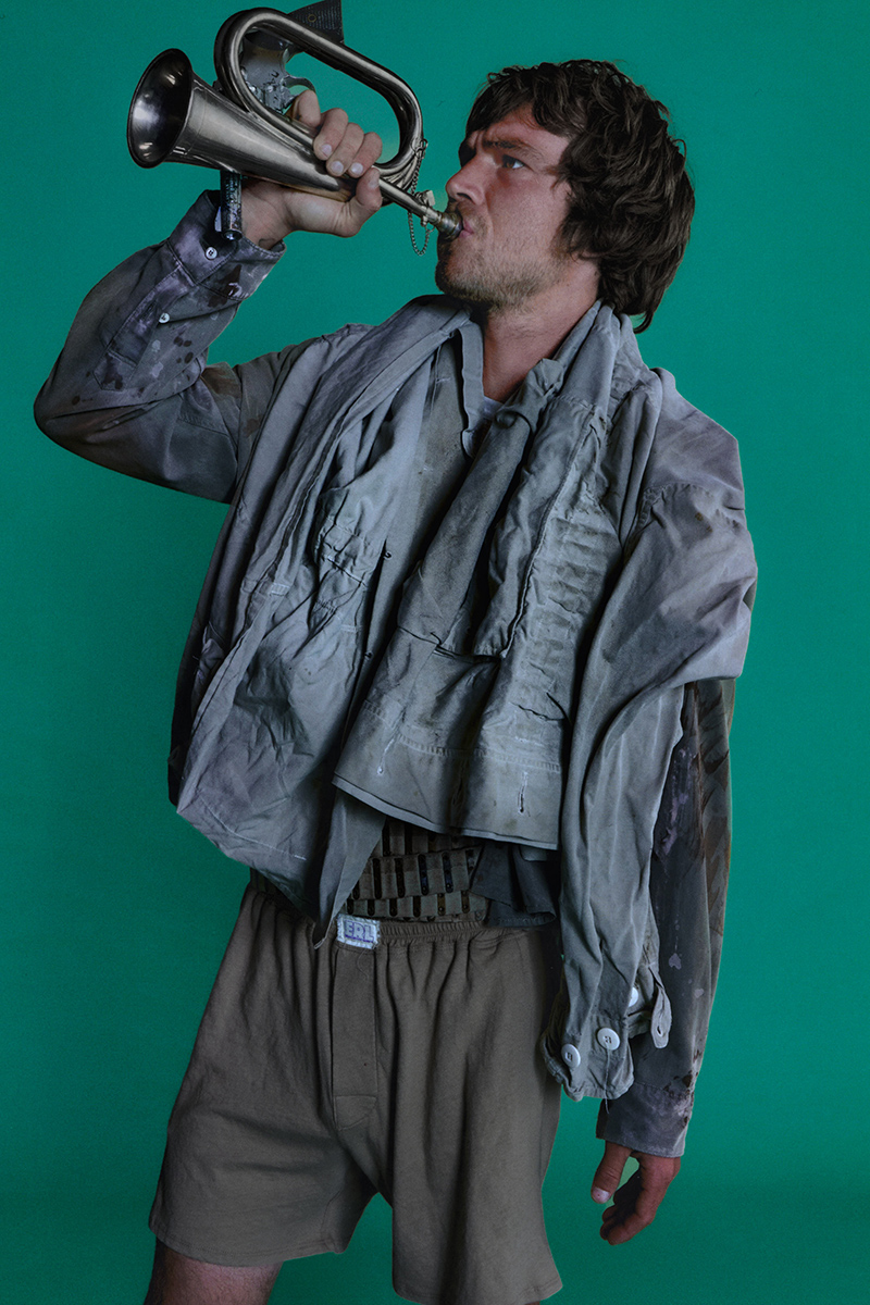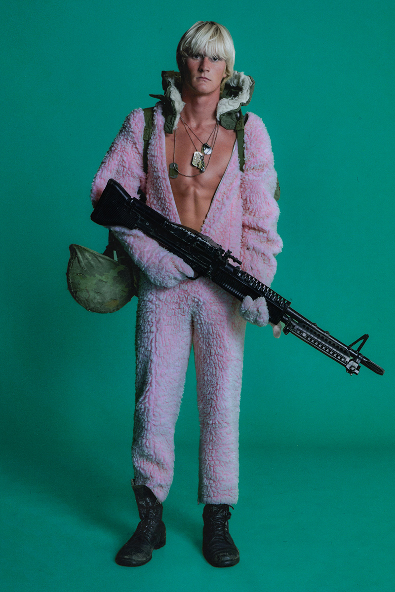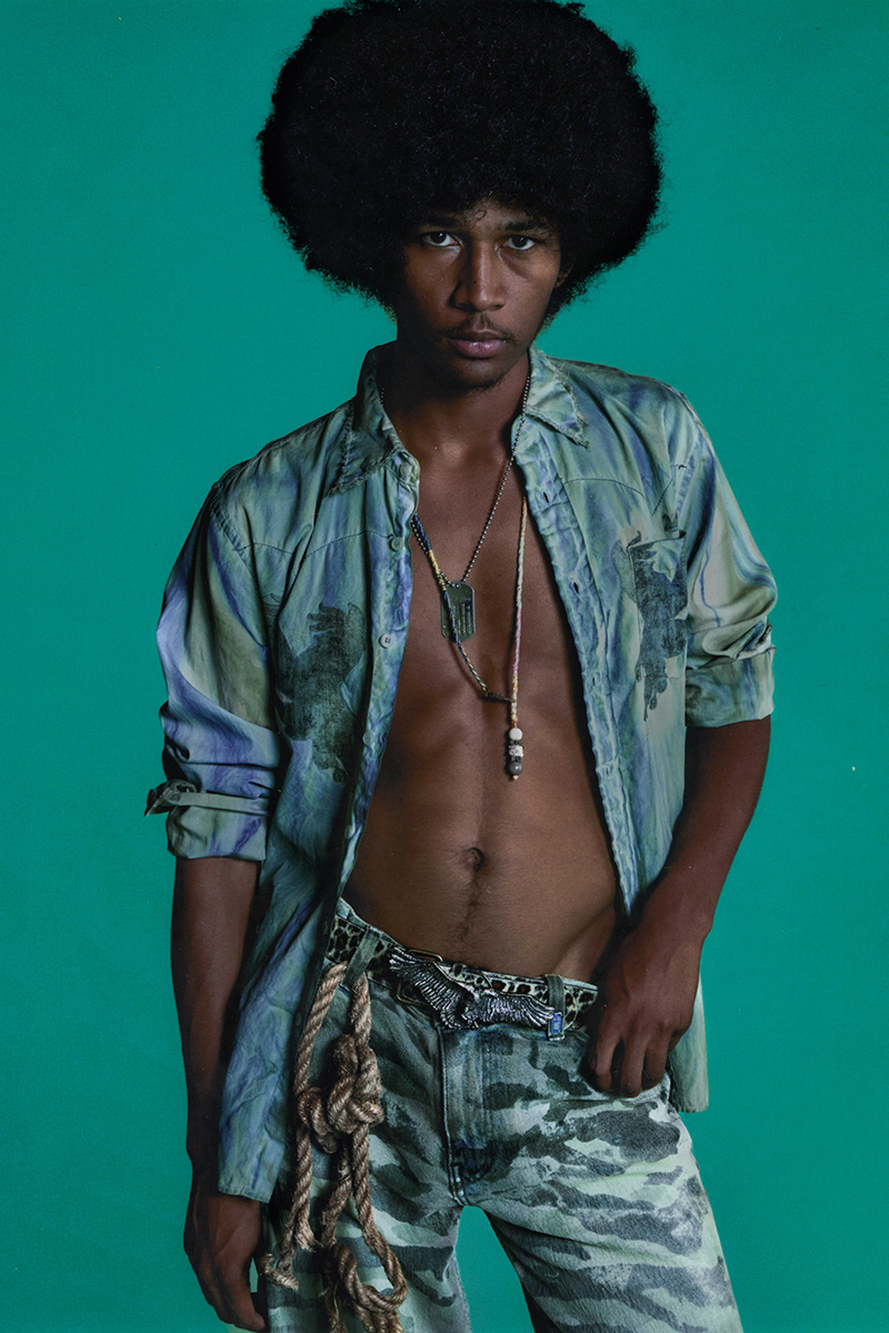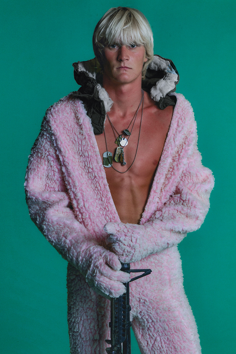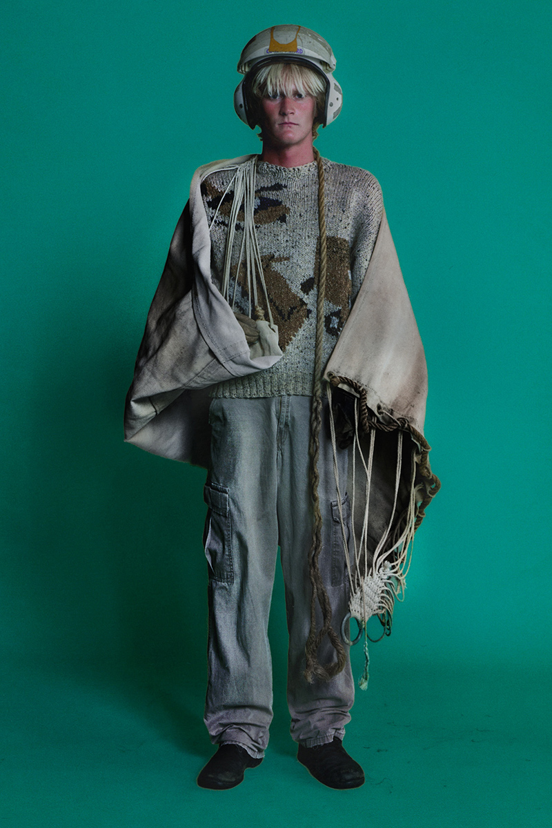 ERL SURPLUS acts as a contemporary version of these spaces. It creates an echo between past and present, pulling imagery from different eras. The collection features patchwork patterns made from threadbare fatigues and faded insignia. It is a depot where military overflow becomes California banner wear.