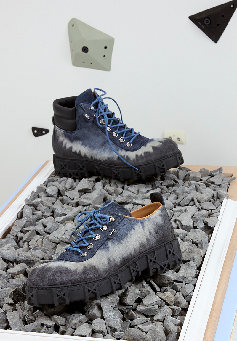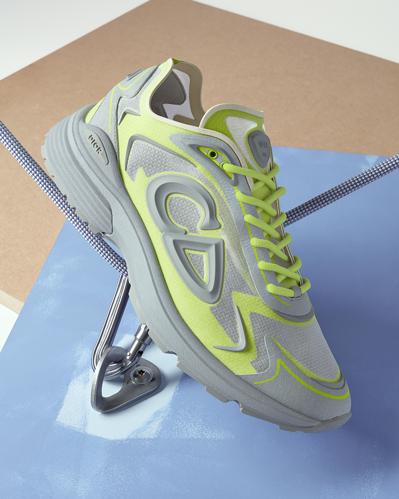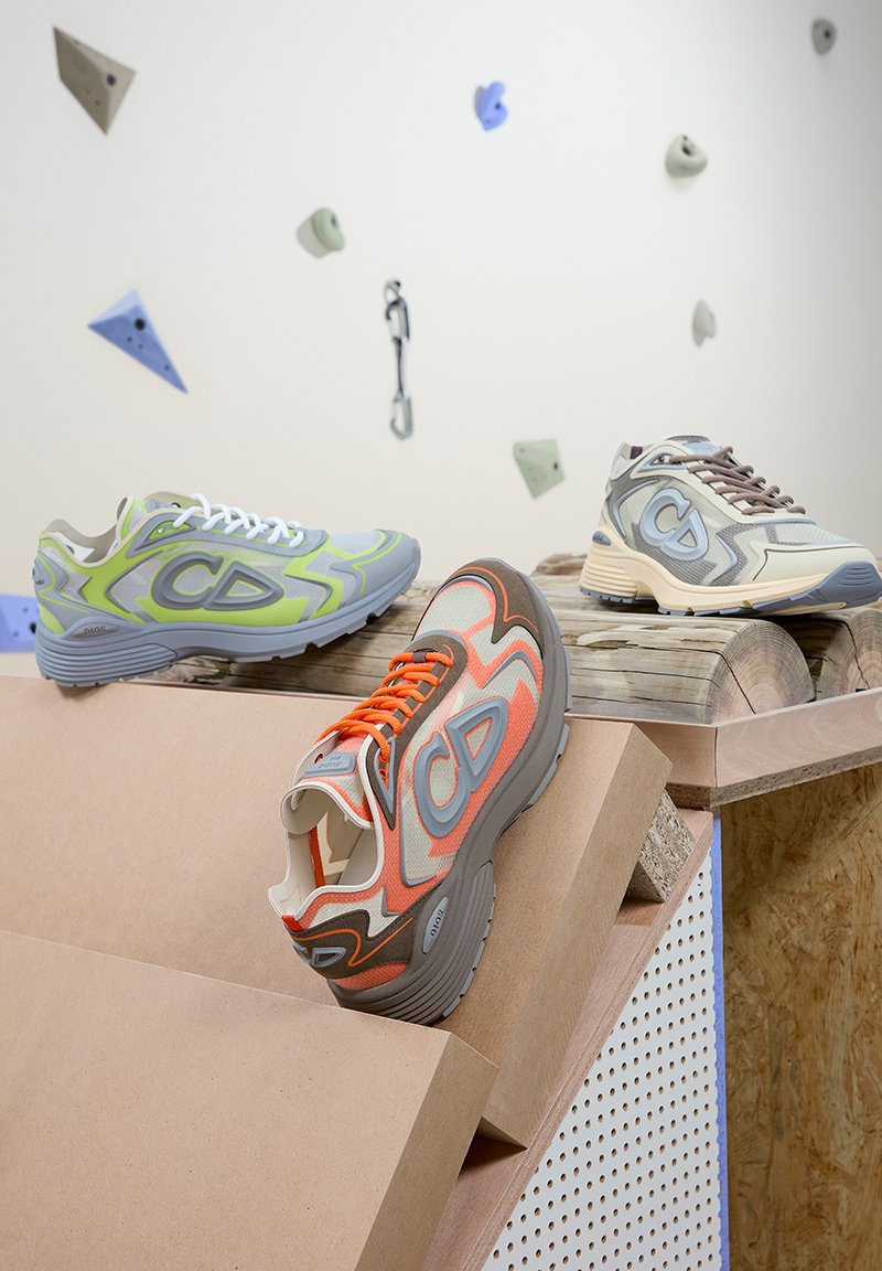 Footwear is also updated. The B30 Countdown sneaker is redesigned in an ultra-technical nylon inspired by competitive running. Another style, the Dior Slickrock sneaker, features a bold sole that reworks the house’s classic cannage motif, giving it a graphic, energetic look.