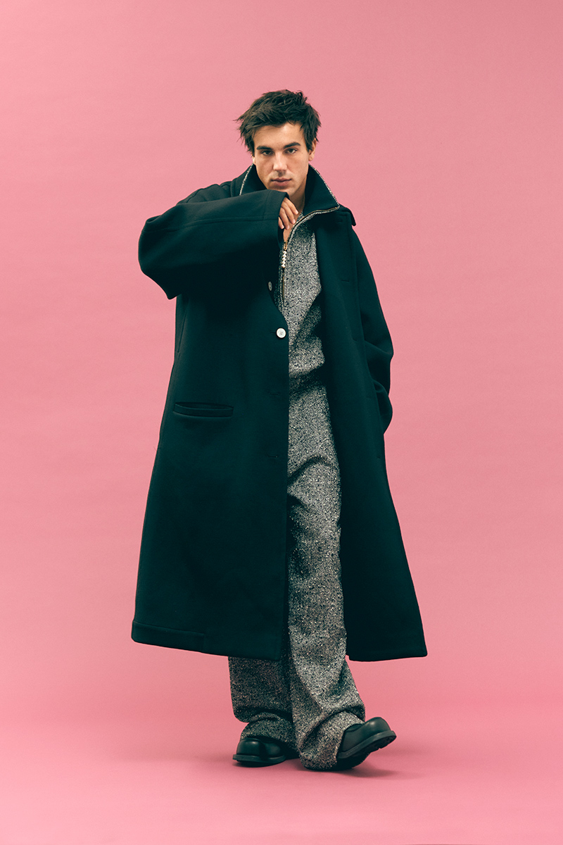 The collection draws from the iconic male figures of early 2000s magazines, connecting that era’s attitude with a pared-down, strong aesthetic.