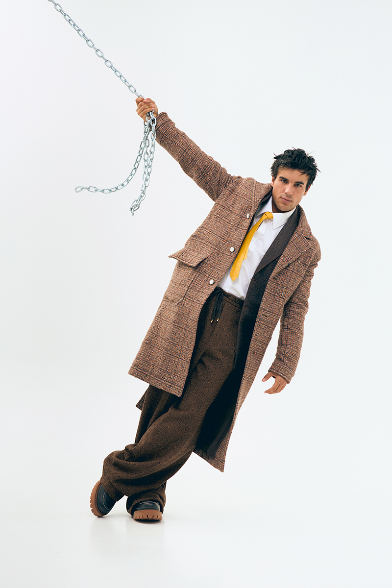 For the DREAMCORE issue of Fucking Young! magazine, Casas steps into the cinematic universe of Louis Vuitton, a brand that, much like his own artistic journey, exists between worlds past and future, fantasy and authenticity. The textures, structures, and timeless silhouettes he wears echo the dreamlike tone of his latest projects, where emotion and imagination intertwine. Casas, who grew up surrounded by cinema, approaches each role with a rare emotional intuition, chasing the same kind of truth that fashion can sometimes reveal without words. “I look for corners of myself that I don’t know yet,” he says, and in doing so, he invites us into a space where style, storytelling, and dreams coexist seamlessly.