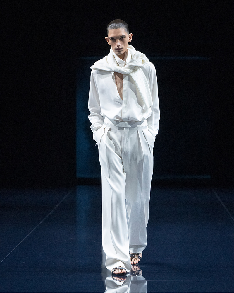 While Ackermann’s debut seemed introspective, this second collection struck a genuine balance. His architectural romanticism fused effortlessly with FORD’s hedonistic sensuality, offering a refreshed view of contemporary masculinity: men who carry tailoring as armour, speak the language of seduction through their clothes, and present themselves without hesitation. With this collection, Haider Ackermann not only reinforces his position at the helm of TOM FORD but delivers one of the season’s most significant, seductive, and sophisticated menswear statements.