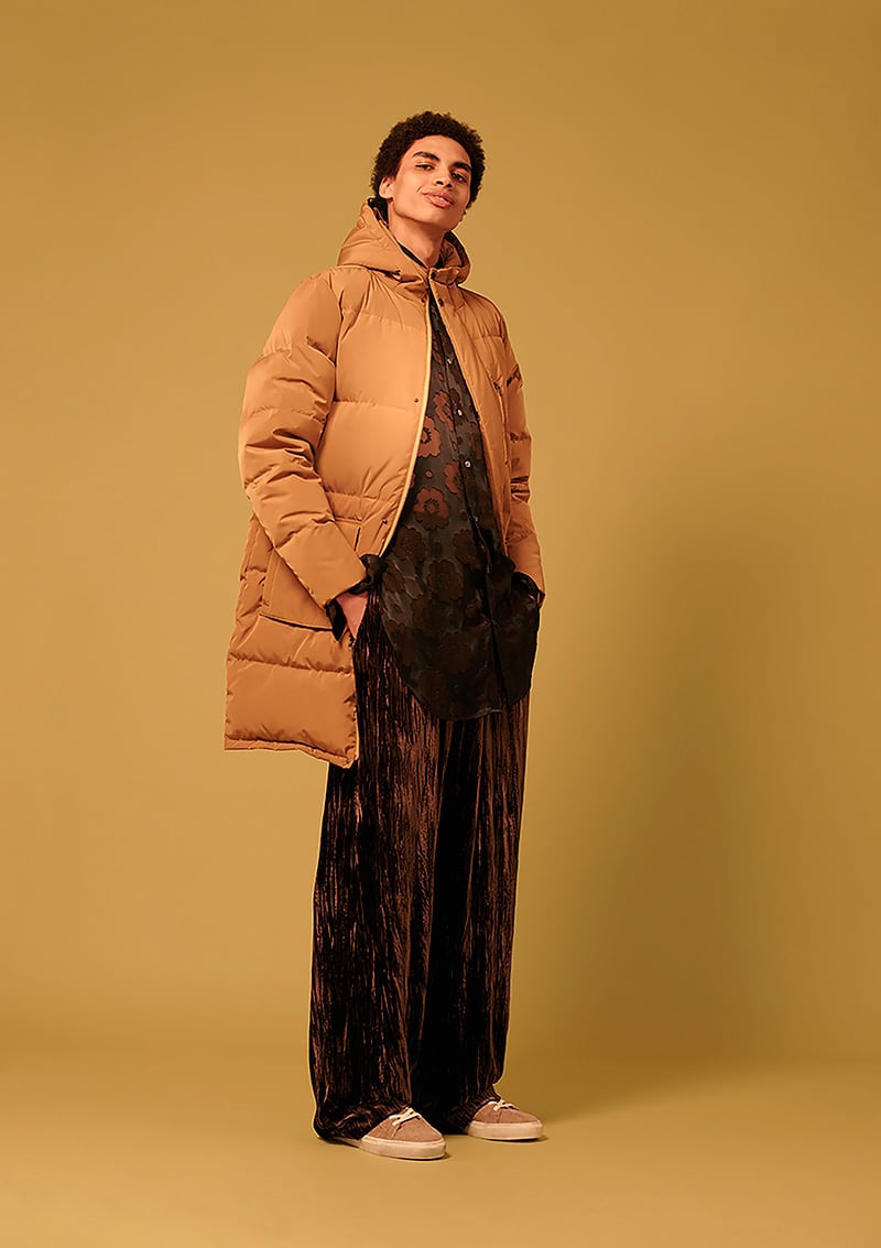 Created with the harsh Nordic winters in mind, ‘Malmo Icelandic’ consists of a selection of premium and heavy weight outerwear intended to combat the elements. Hero items include a sherpa jacket with suede pocket detailing, mohair knit jumper and coach jacket in keeping with this season’s key colour-way – pink. Fine flannel shirts serve as essential layering items and are paired with long-line cardigans and tees, honing in on a loose and slouchy silhouette. Adhering to a strict Nordic design aesthetic, the colour pallet is kept muted and minimal with cut and sew colour blocking used throughout.