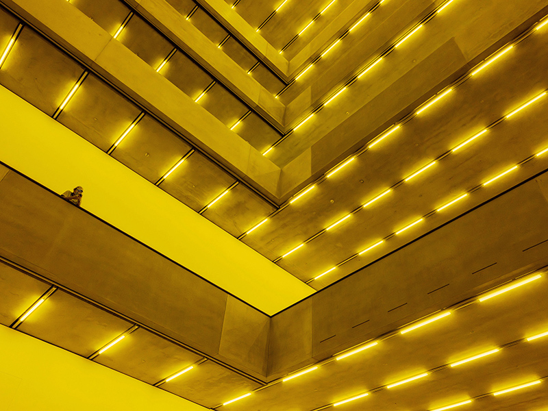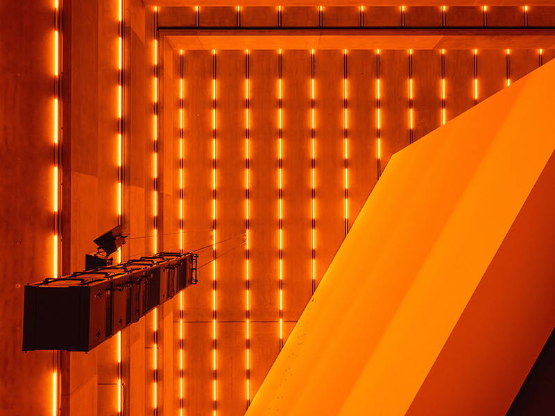 What makes “Bass” especially potent at the Schaulager is how McQueen has adapted it to the architecture there. The spaciousness, height, light wells, acoustics all these physical traits of the building interact with the installation. The interplay of towering space and enveloping light, the way low frequencies vibrate through concrete, these give new weight to one’s awareness of space and time.