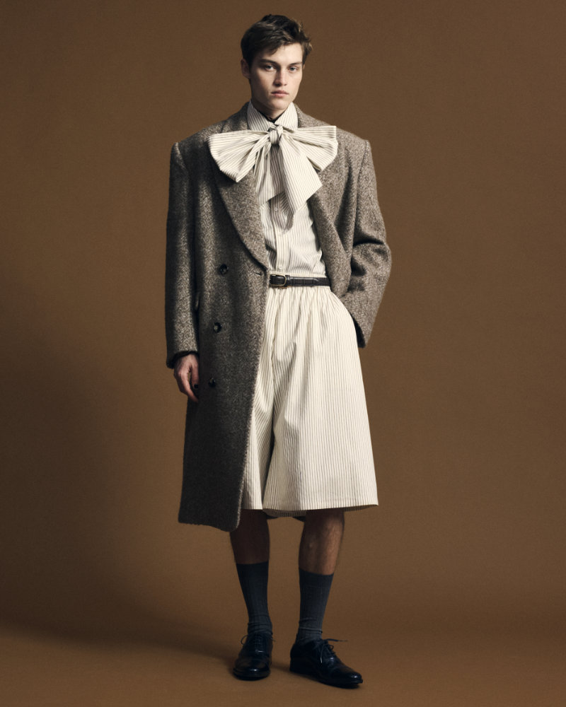 The starting point is a sense of discomfort with menswear as a system. The designer notes that menswear has long been governed by rules, discipline, and dress codes. This order is closely tied to traditional ideas of correctness and masculinity. Today, these frameworks feel increasingly rigid. Everything is defined, categorized, and optimized. The ambiguous spaces that once existed are slowly disappearing.