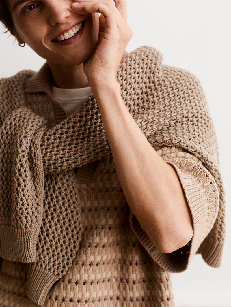 A special Savoir-Faire capsule highlights artisanal skill. It features six exclusive garments, including a leather jacket and a hand-crocheted shirt, showcasing French and Japanese techniques. Each piece comes with a tag explaining the methods used.