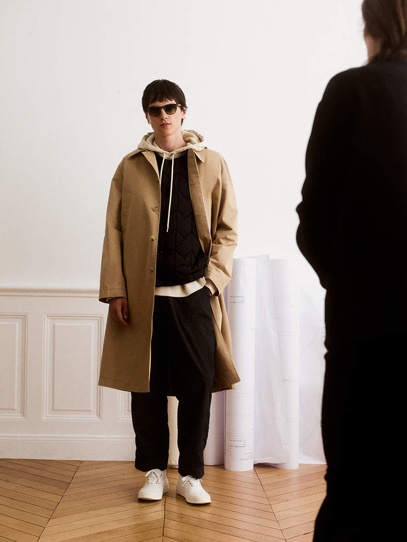 The collection imagines the perspective of a Japanese traveler rediscovering Paris. It explores the meeting of Parisian elegance and Japanese refinement, creating a wardrobe that feels both familiar and new.