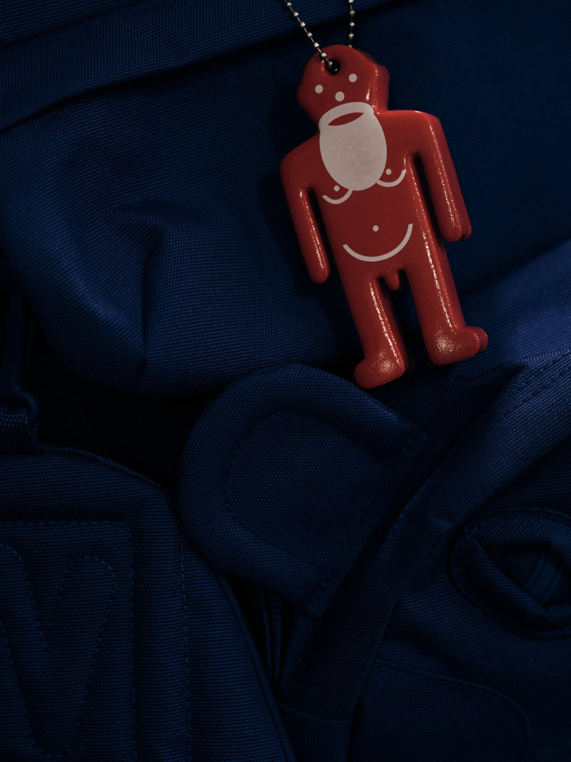 The line includes backpacks, totes, accessories, and travel items featuring Haring’s iconic imagery, including his signature heart and the Radiant Baby artwork.