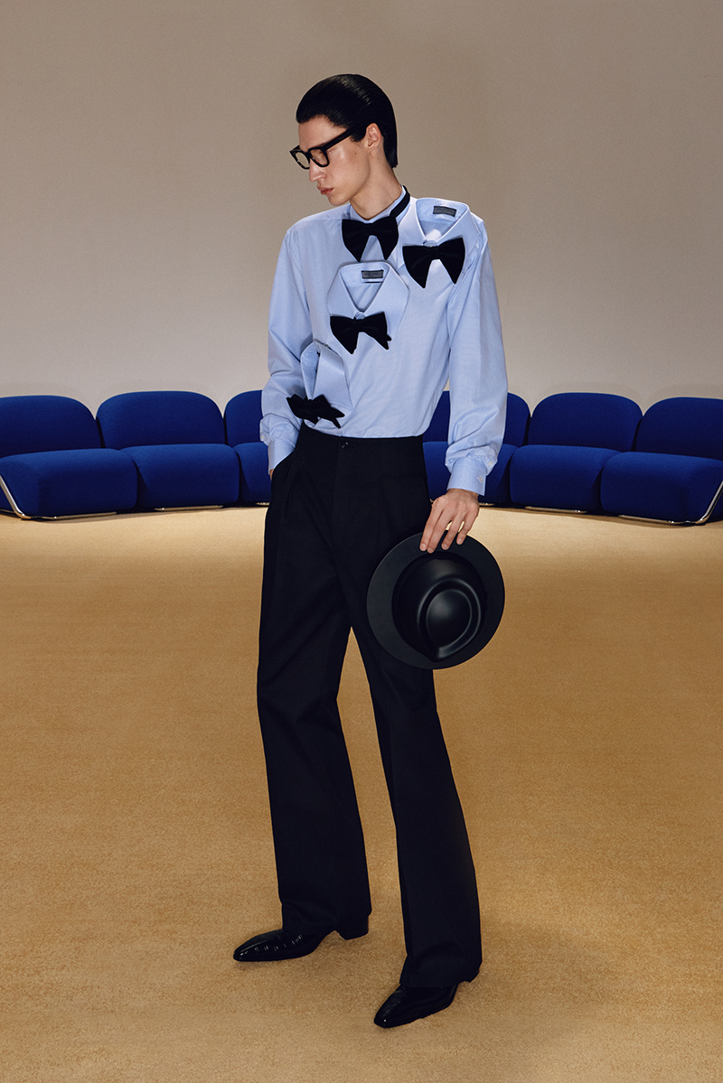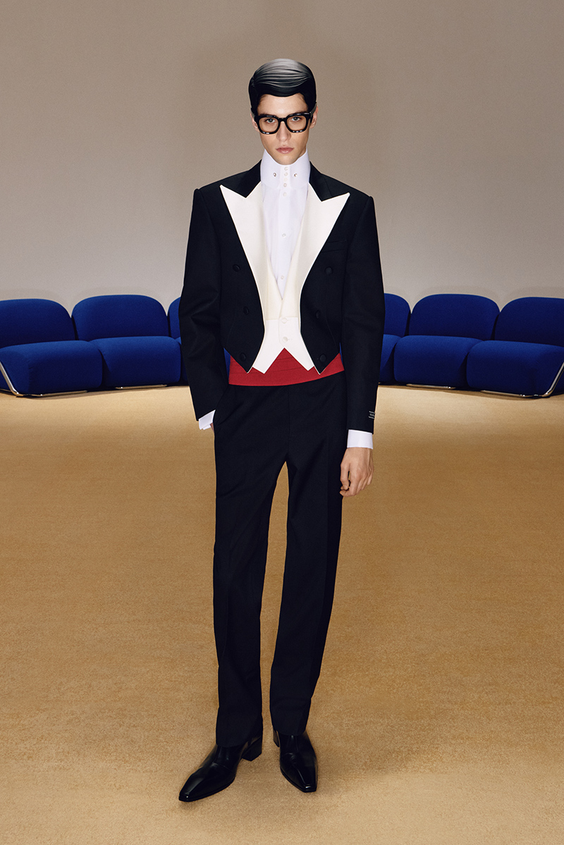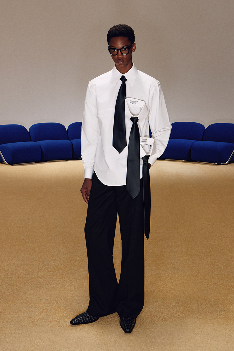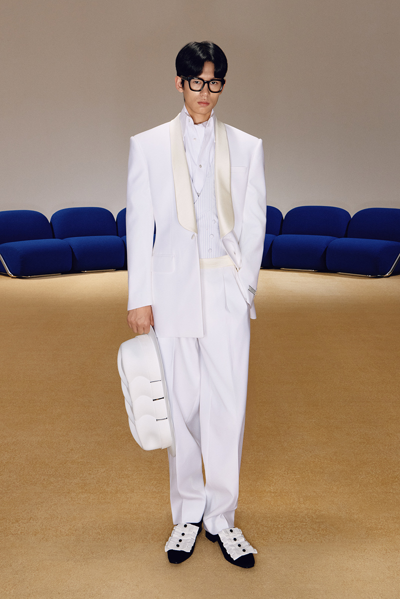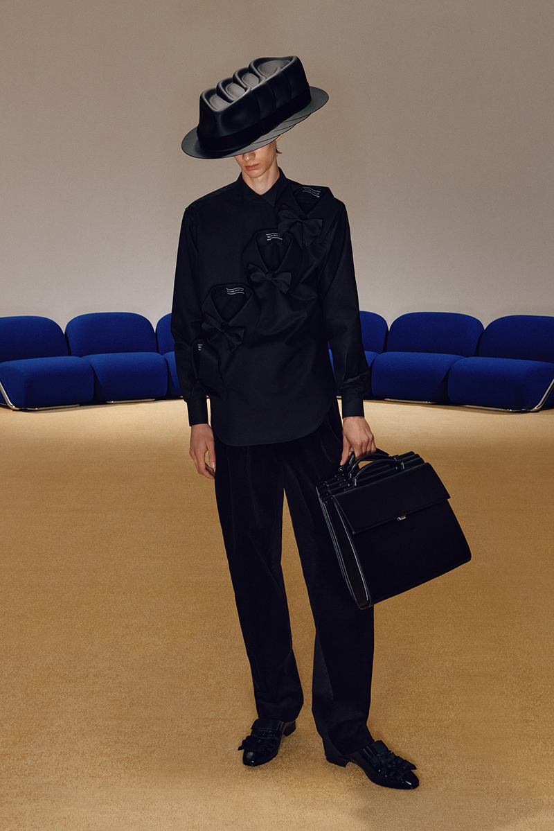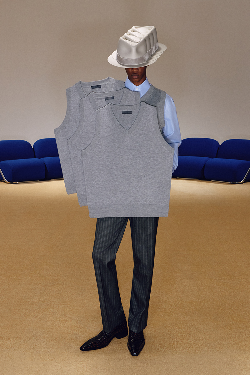 If past collections looked to astronauts and cosmic systems, this one looks at a parallel version of our own world. Here, the suit is the default interface assigned by a system. The recursive tailoring and extended accessories make people look like social identities stuck in an infinite loading loop.