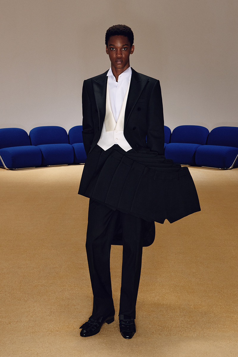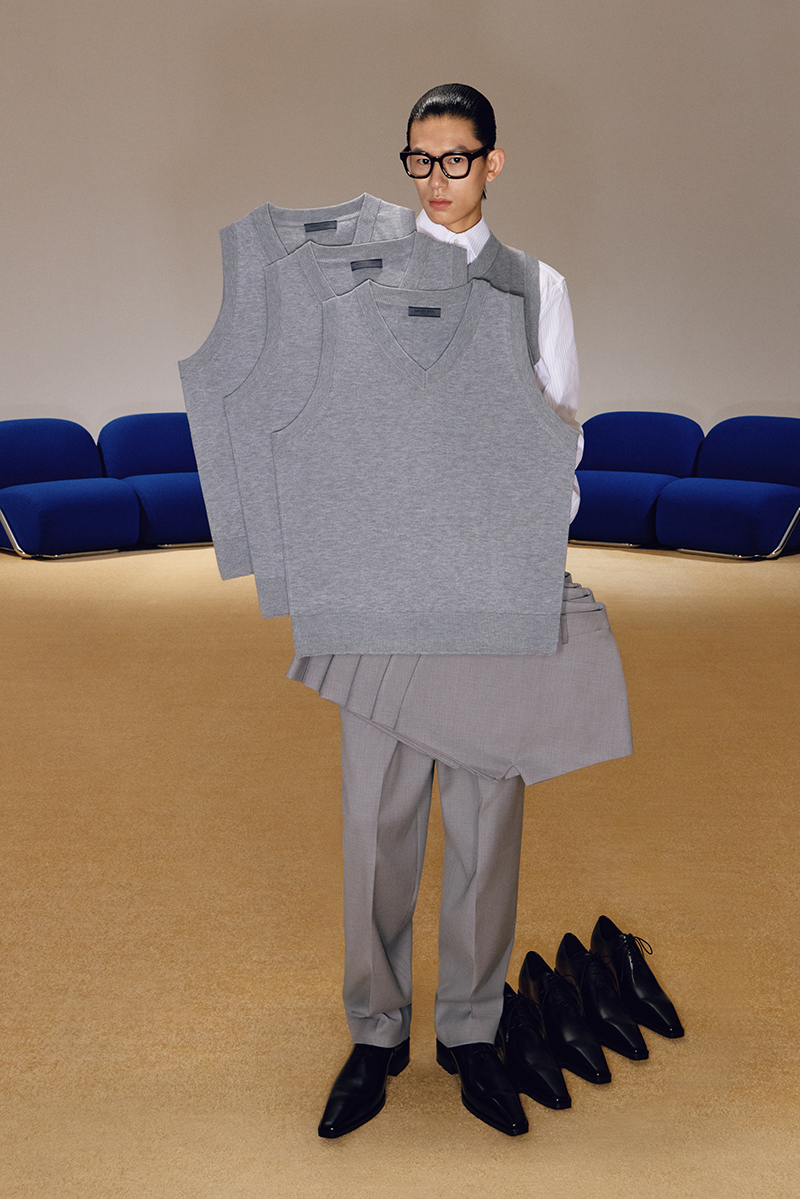 In the sixth chapter of his PRO line, Xander Zhou turns his attention to the suit. The collection, titled “Fragmented Formality,” explores what happens when the classic system of menswear begins to break down. It disassembles and duplicates, creating a new kind of order from its own collapse.