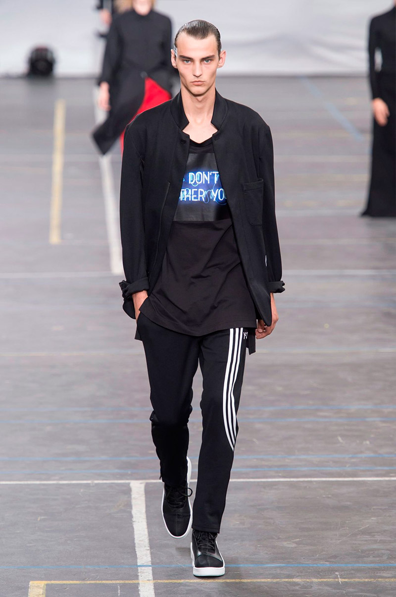 Yohji Yamamoto presented his Spring/Summer 2016 collection for Y-3 during Paris Fashion Week. At their essence, adidas and Yohji Yamamoto are united in their endless quest to define and dress one singular object: the human body in motion. For Spring/Summer 2016, Y-3 delivers a bold, iconic collection that explores a kinetic grace with sheer, fluid, ultra-light pieces designed to move – the 3 Stripes in Motion.